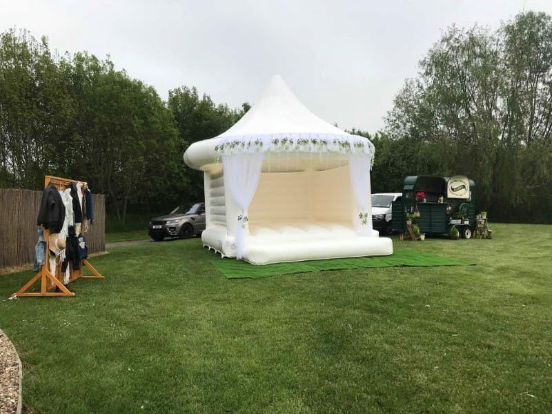 Suitable for children and adults, this white Wedding bouncy castle is both classy and fun.